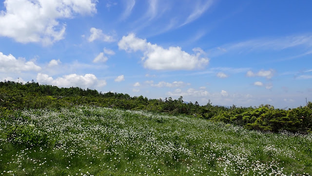 好天の下で咲き乱れるワタスゲを見ながらのんびりと行きます。