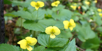園芸種が植えられていない場所には、いたるところでスミレが咲き乱れます。